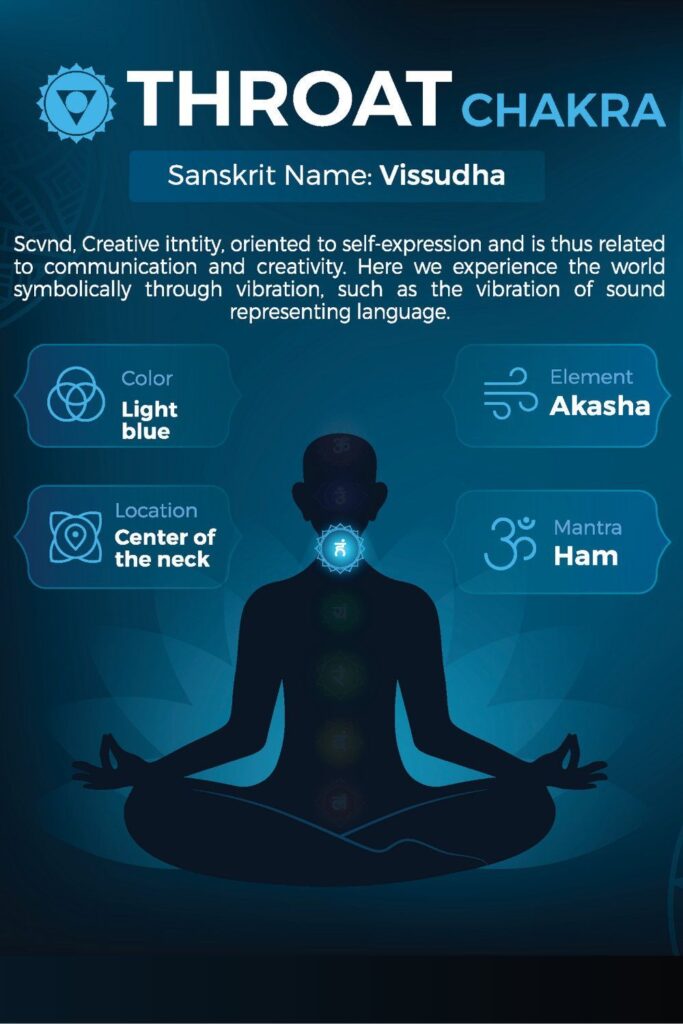 This chakra is your voice. It helps you express your thoughts and emotions clearly and honestly. When balanced, you speak your truth with confidence. But when blocked, you might struggle to express yourself or fear being misunderstood.
